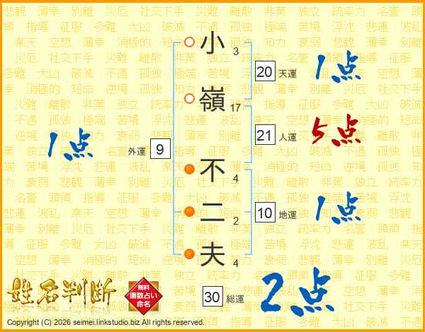 小嶺不二夫さんの総運は30画の2点!