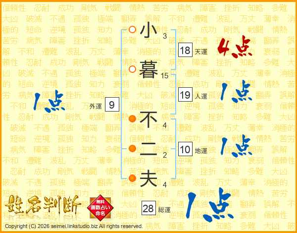 小暮不二夫さんの天運は18画の4点!