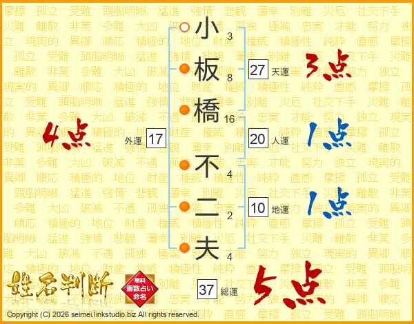 小(3画)板(8画)橋(16画) 不(4画)二(2画)夫(4画)
