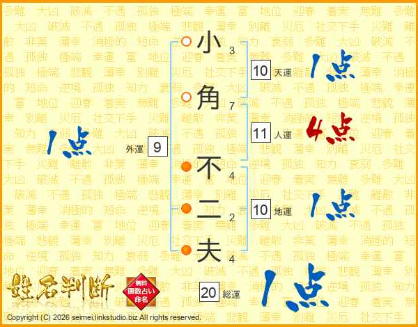小(3画)角(7画) 不(4画)二(2画)夫(4画)