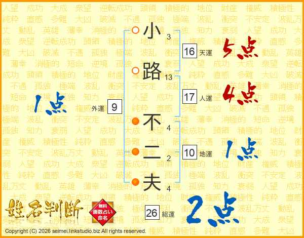 小路不二夫さんの総運は26画の2点!
