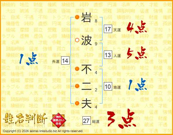 岩波不二夫さんの人運は13画の5点!