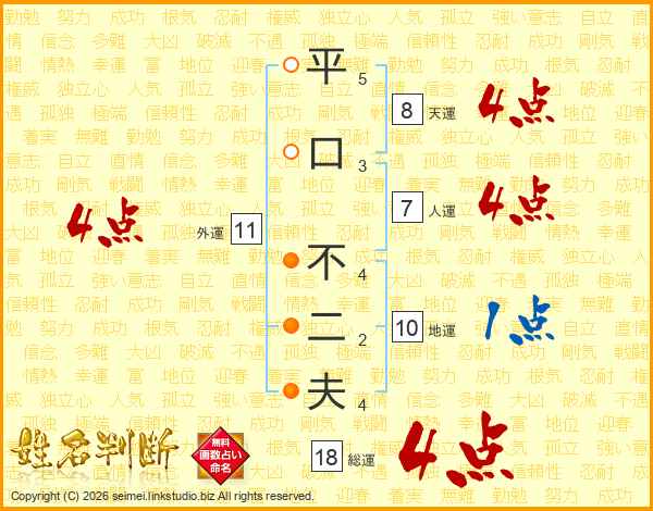 平口不二夫さんの総運は18画の4点!