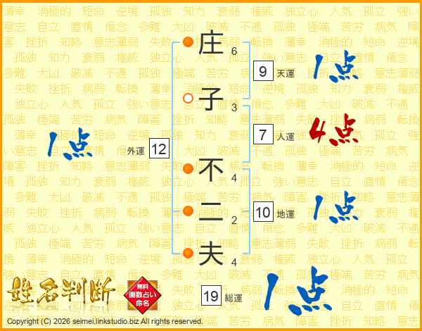 庄子不二夫さんの総運は19画の1点!