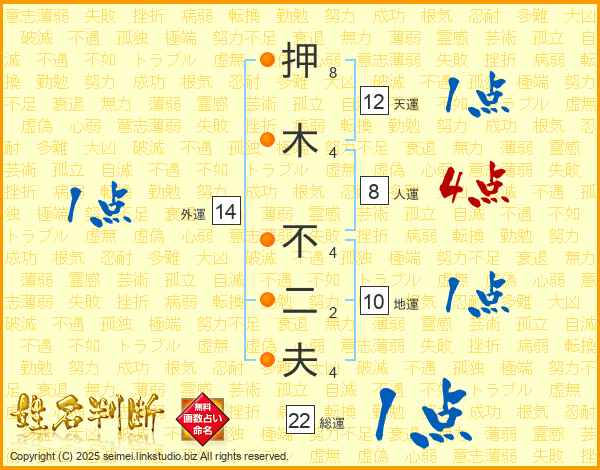 押(8画)木(4画) 不(4画)二(2画)夫(4画)