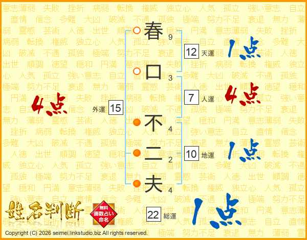 春口不二夫さんの総運は22画の1点!