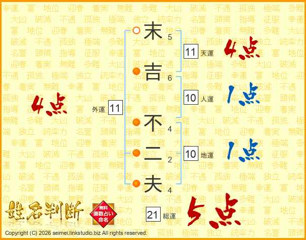 末(5画)吉(6画) 不(4画)二(2画)夫(4画)