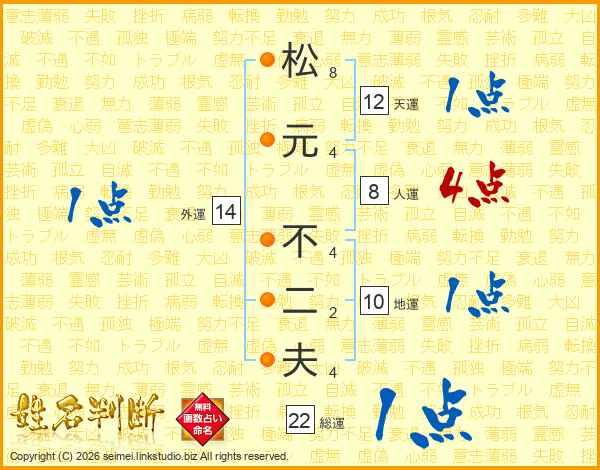 松元不二夫さんの総運は22画の1点!