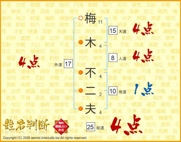 梅木不二夫さんの天運は15画の4点!