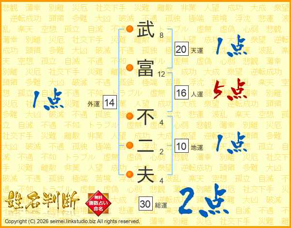 武富不二夫さんの総運は30画の2点!
