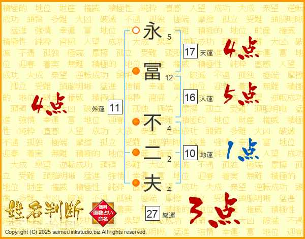 永(5画)冨(12画) 不(4画)二(2画)夫(4画)