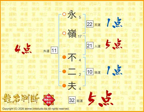 永嶺不二夫さんの総運は32画の5点!