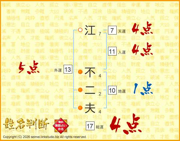 江不二夫さんの総運は17画の4点!