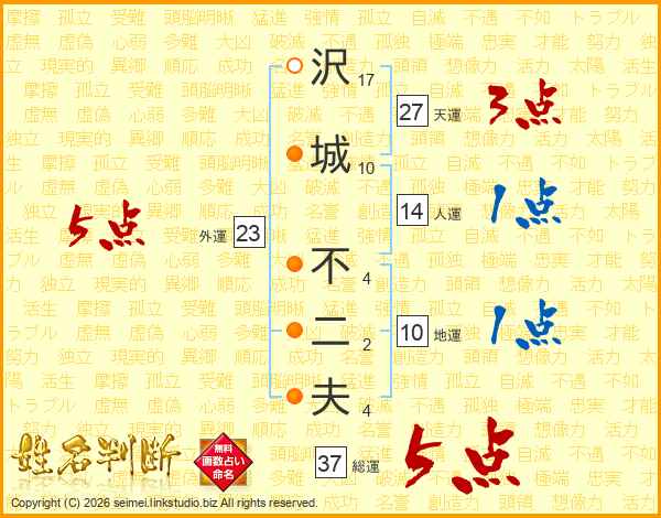 沢(17画)城(10画) 不(4画)二(2画)夫(4画)