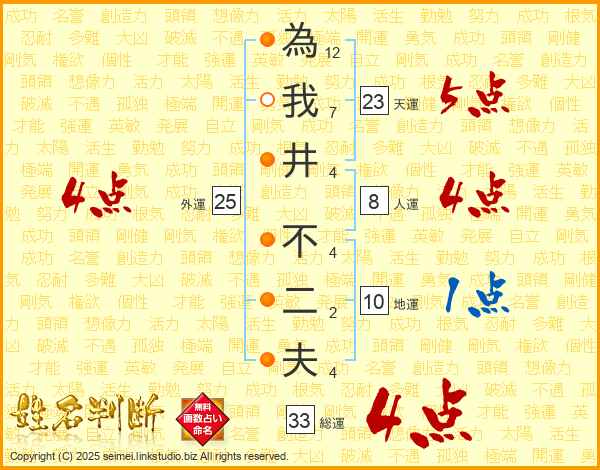 為我井不二夫さんの総運は33画の4点!