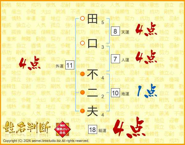 田口不二夫さんの総運は18画の4点!