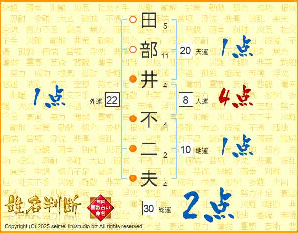田部井不二夫さんの天運は20画の1点!