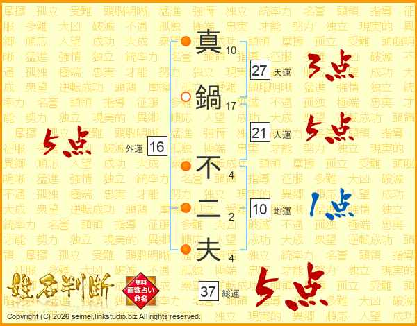 真鍋不二夫さんの総運は37画の5点!