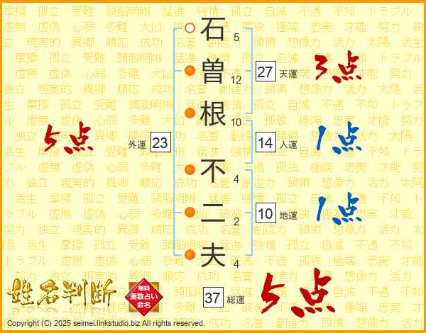 石曽根不二夫さんの総運は37画の5点!