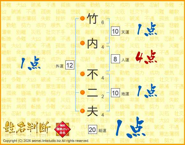 竹(6画)内(4画) 不(4画)二(2画)夫(4画)