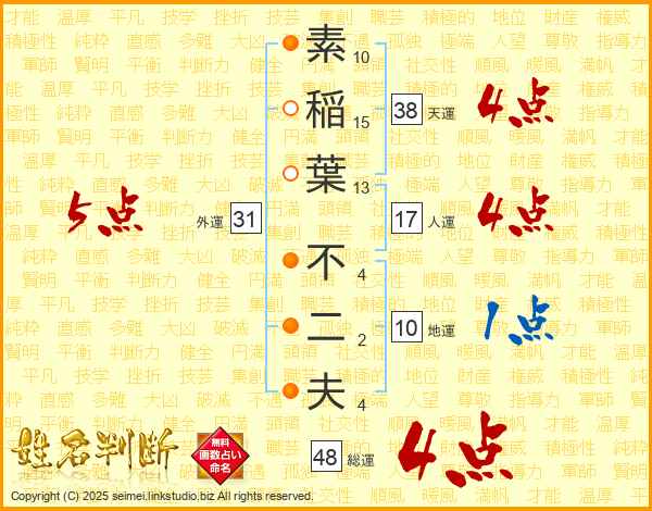 素稲葉不二夫さんの外運は31画の5点!