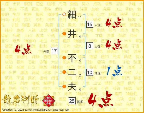 細井不二夫さんの天運は15画の4点!