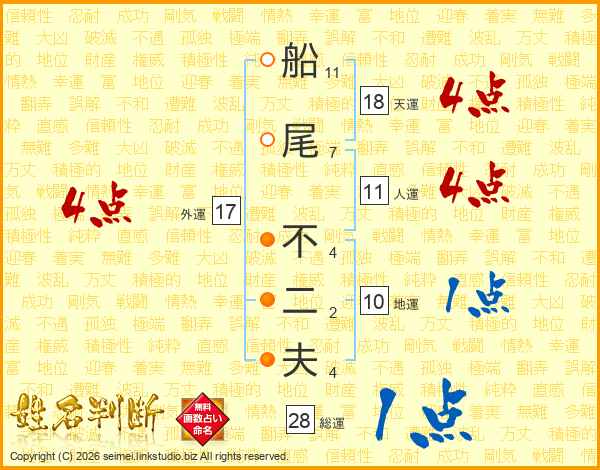 船尾不二夫さんの人運は11画の4点!