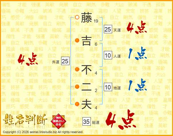藤吉不二夫さんの天運は25画の4点!