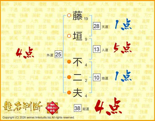 藤垣不二夫さんの総運は38画の4点!