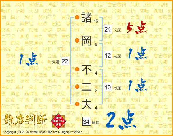 諸岡不二夫さんの総運は34画の2点!