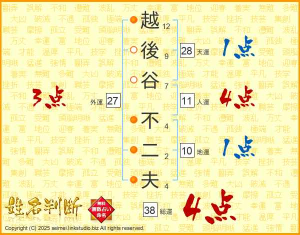 越(12画)後(9画)谷(7画) 不(4画)二(2画)夫(4画)