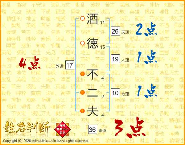 酒徳不二夫さんの天運は26画の2点!