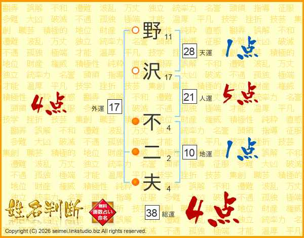 野沢不二夫さんの総運は38画の4点!