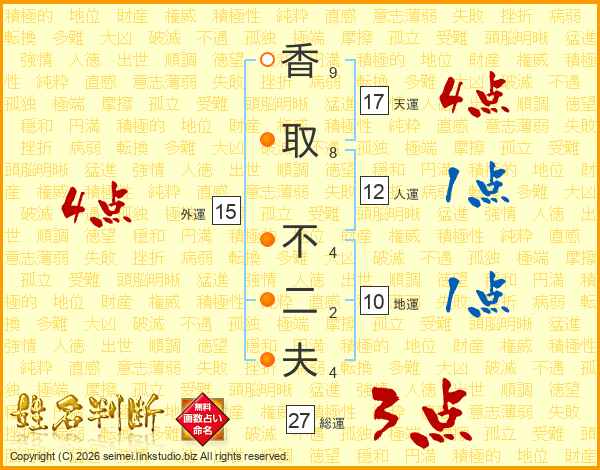 香(9画)取(8画) 不(4画)二(2画)夫(4画)