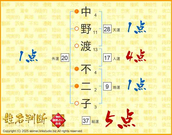 中野渡不二子さんの総運は37画の5点!