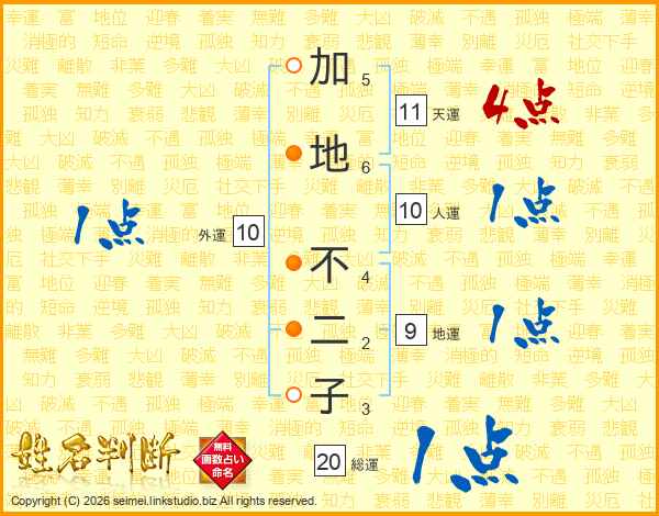 加(5画)地(6画) 不(4画)二(2画)子(3画)