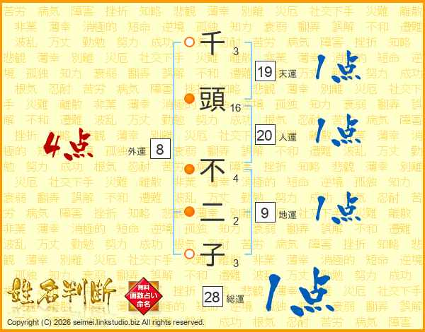 千頭不二子さんの天運は19画の1点!