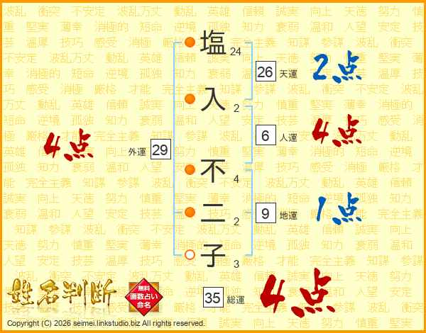 塩入不二子さんの天運は26画の2点!