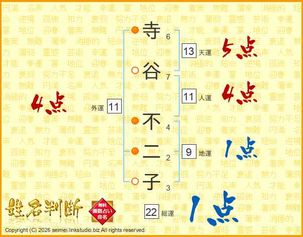 寺(6画)谷(7画) 不(4画)二(2画)子(3画)