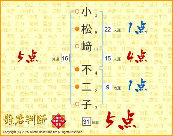 小(3画)松(8画)﨑(11画) 不(4画)二(2画)子(3画)