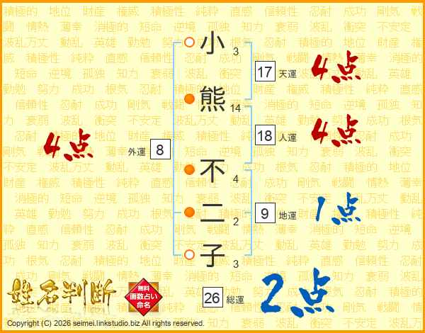 小熊不二子さんの総運は26画の2点!