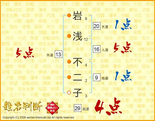 岩浅不二子さんの総運は29画の4点!