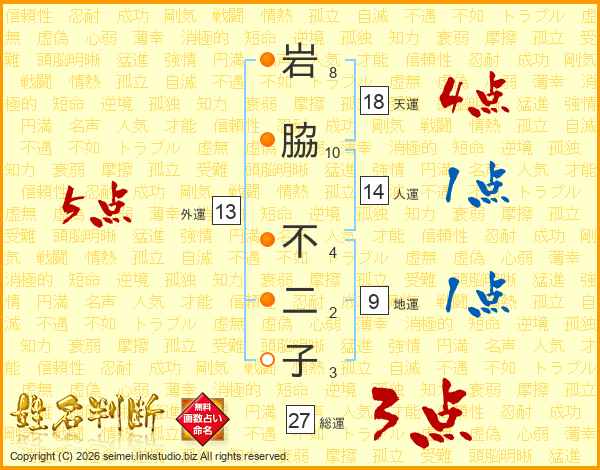 岩脇不二子さんの総運は27画の3点!