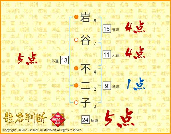 岩谷不二子さんの人運は11画の4点!