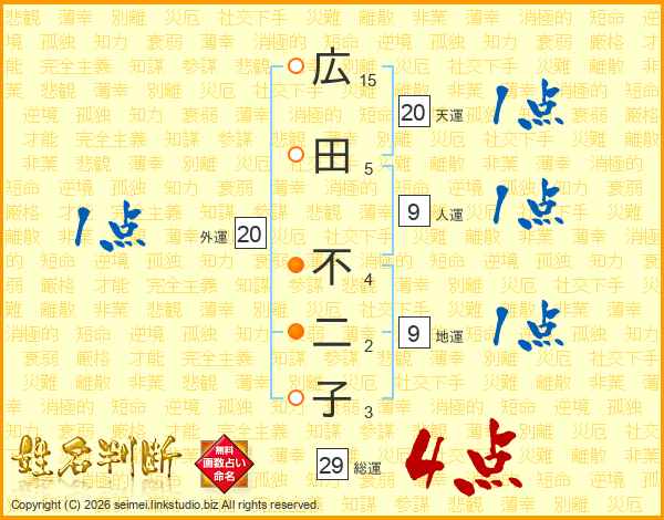 広田不二子さんの総運は29画の4点!