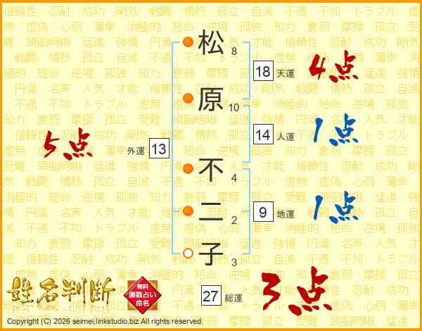 松(8画)原(10画) 不(4画)二(2画)子(3画)