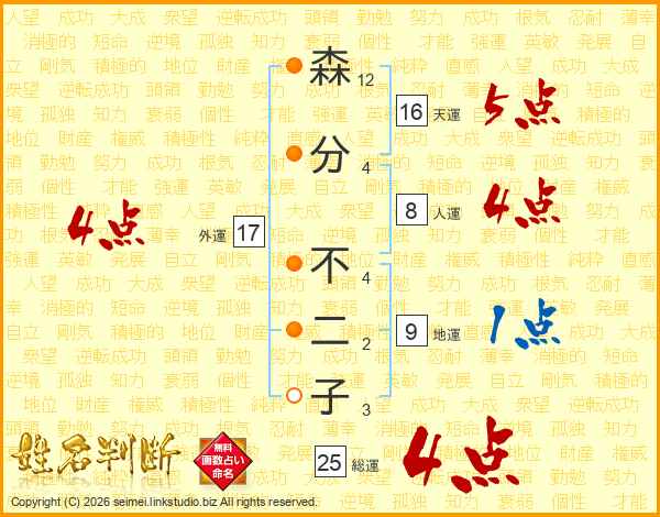 森分不二子さんの総運は25画の4点!