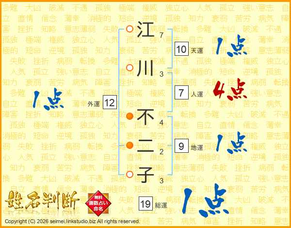 江(7画)川(3画) 不(4画)二(2画)子(3画)