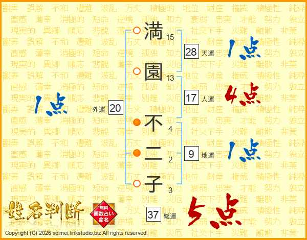 満園不二子さんの総運は37画の5点!