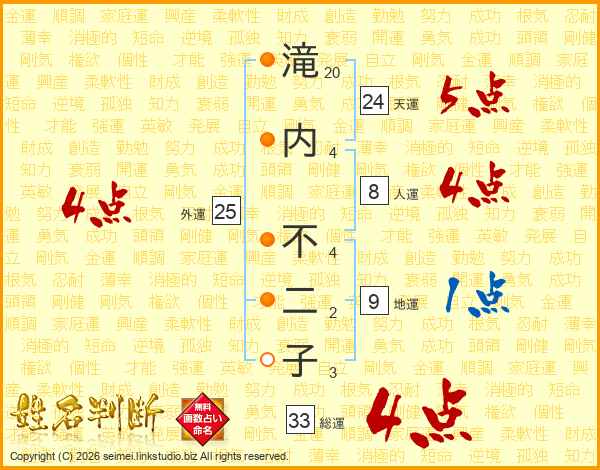 滝内不二子さんの総運は33画の4点!